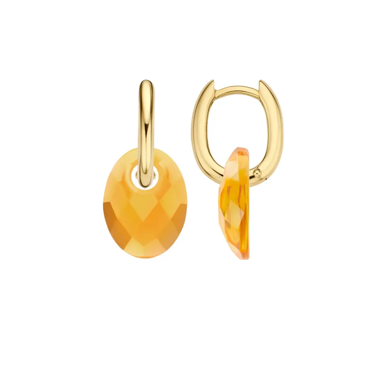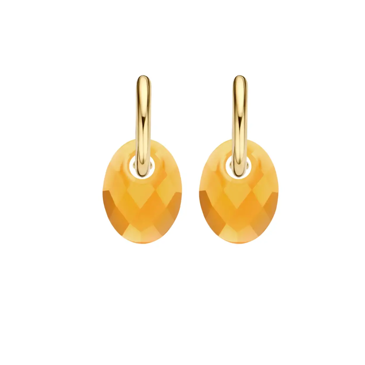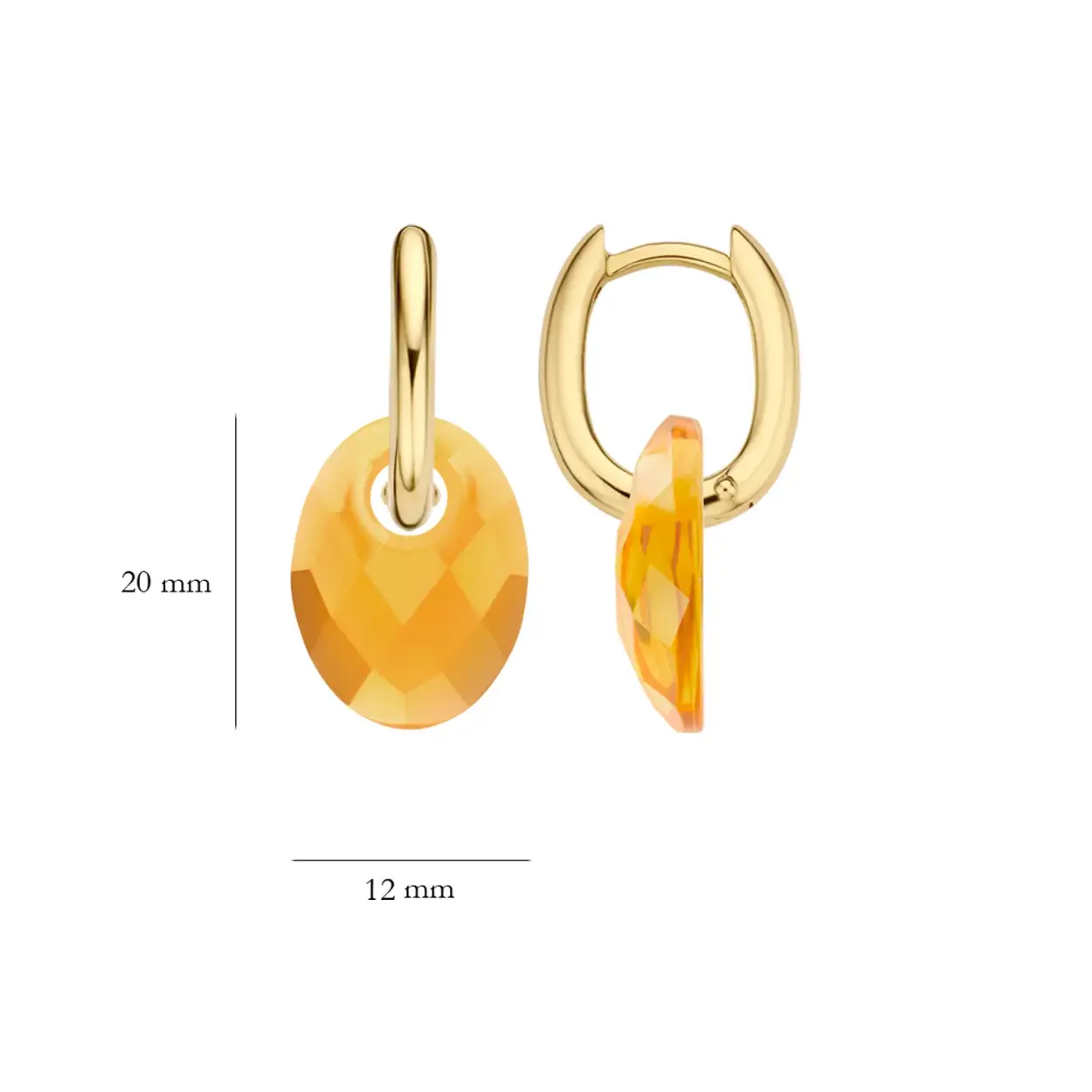 Hou je van speels en stylish? Dan zijn deze natuurstenen oorbedels iets voor jou. De ovaalvormige bedels zijn gemaakt van heldergele citrien met facetslijpsel. Ze zijn 20 mm hoog en passen om oorringen met maximaal 3 mm doorsnede. Prachtig samen met gouden oorbedels van Blush