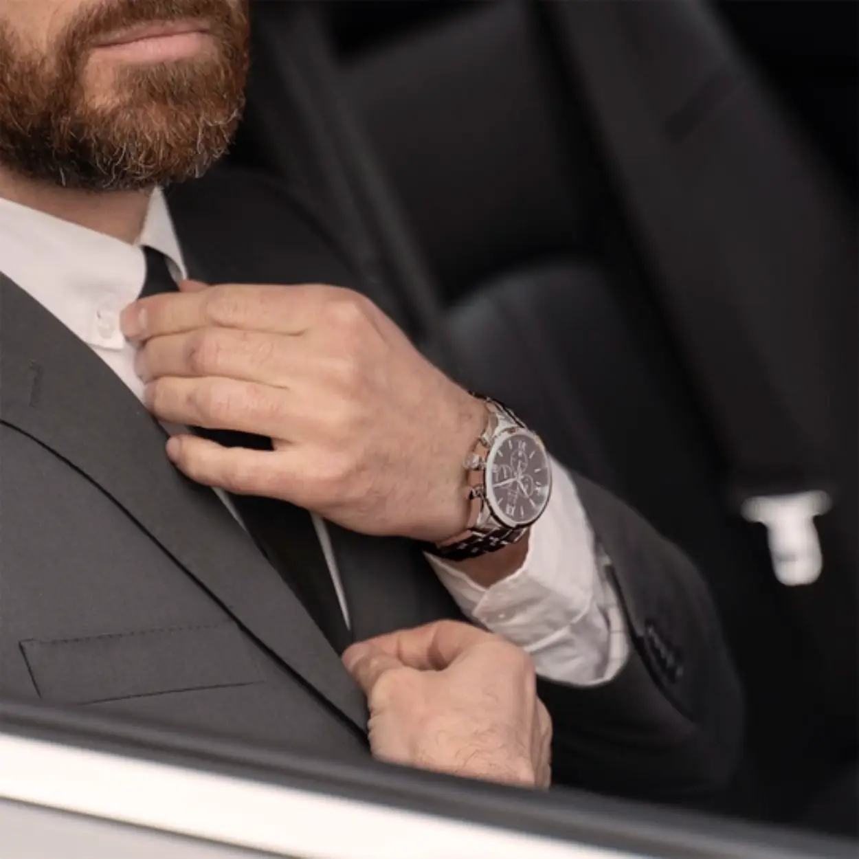 Zwarte wijzerplaat multi-functie met datumaanduiding