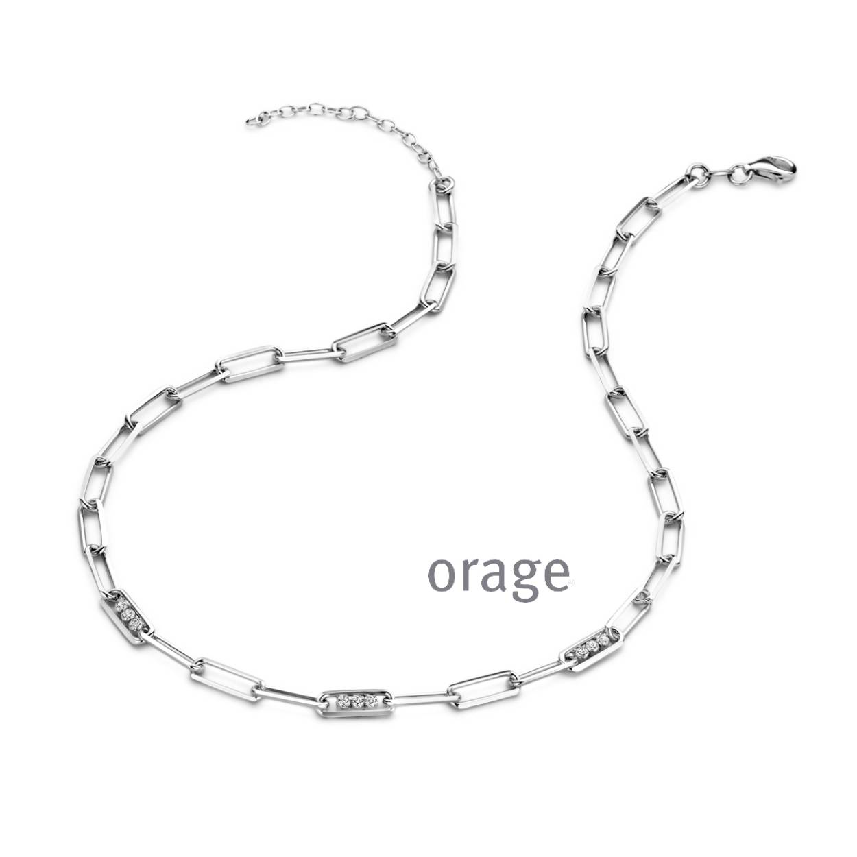 Zilveren collier met open schakels en zirkonium - Lengte: 40cm + 5 cm - Bijhorende oorhangers en armband ook verkrijgbaar