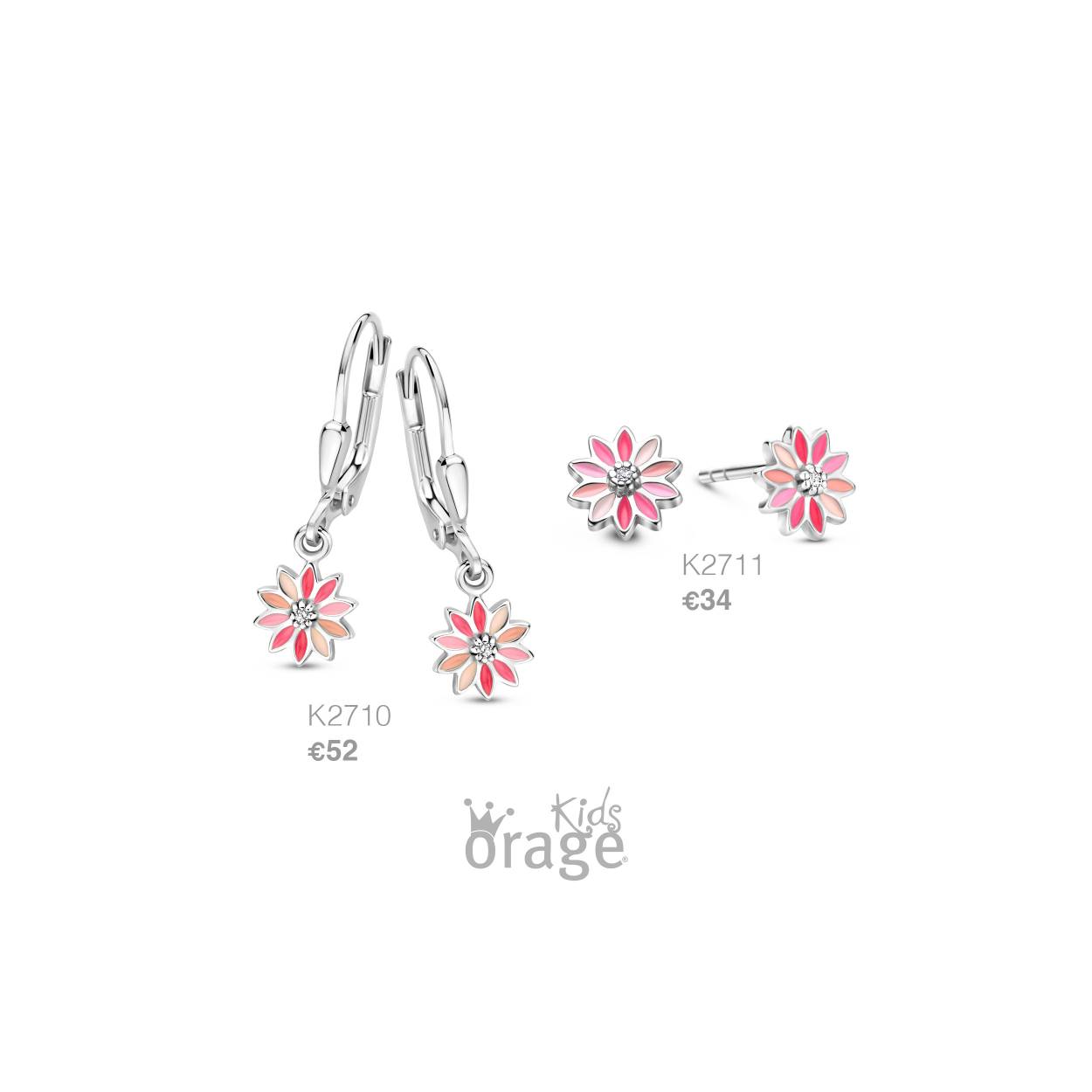 Zilveren oorstekers 'bloem roze' van het merk Orage kids