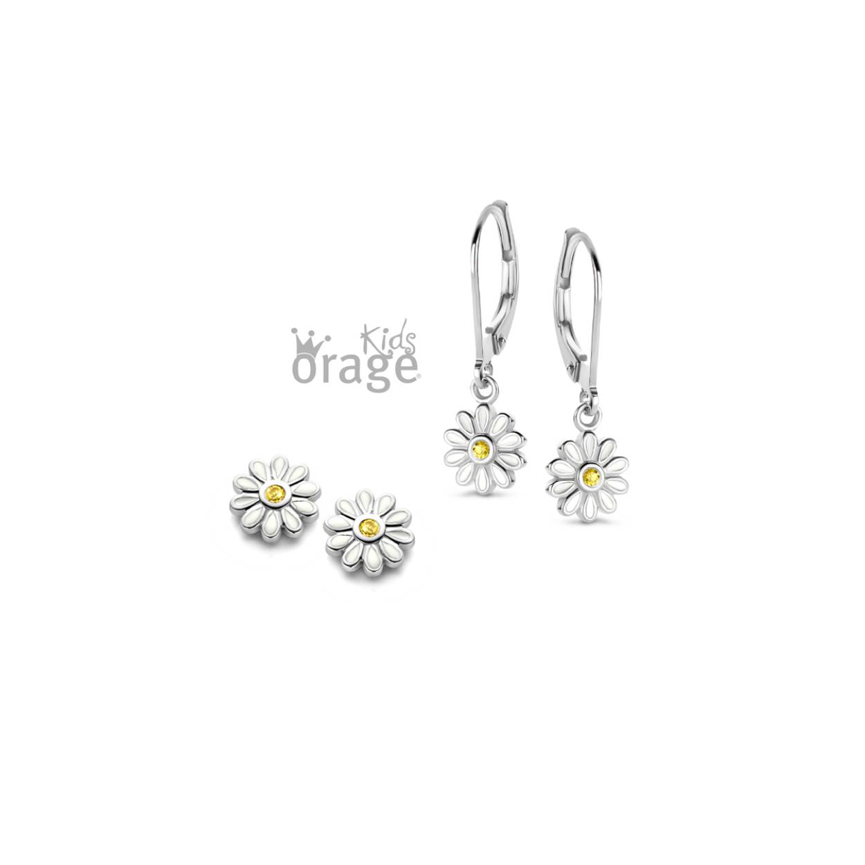 Zilveren oorstekers 'bloem wit/geel' van Orage kids