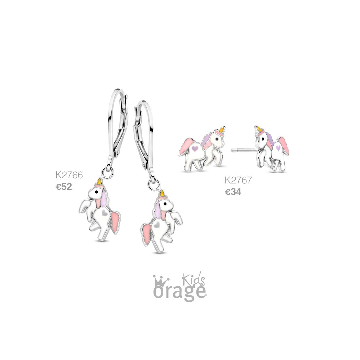 Zilveren oorstekers 'unicorn' van het merk Orage kids