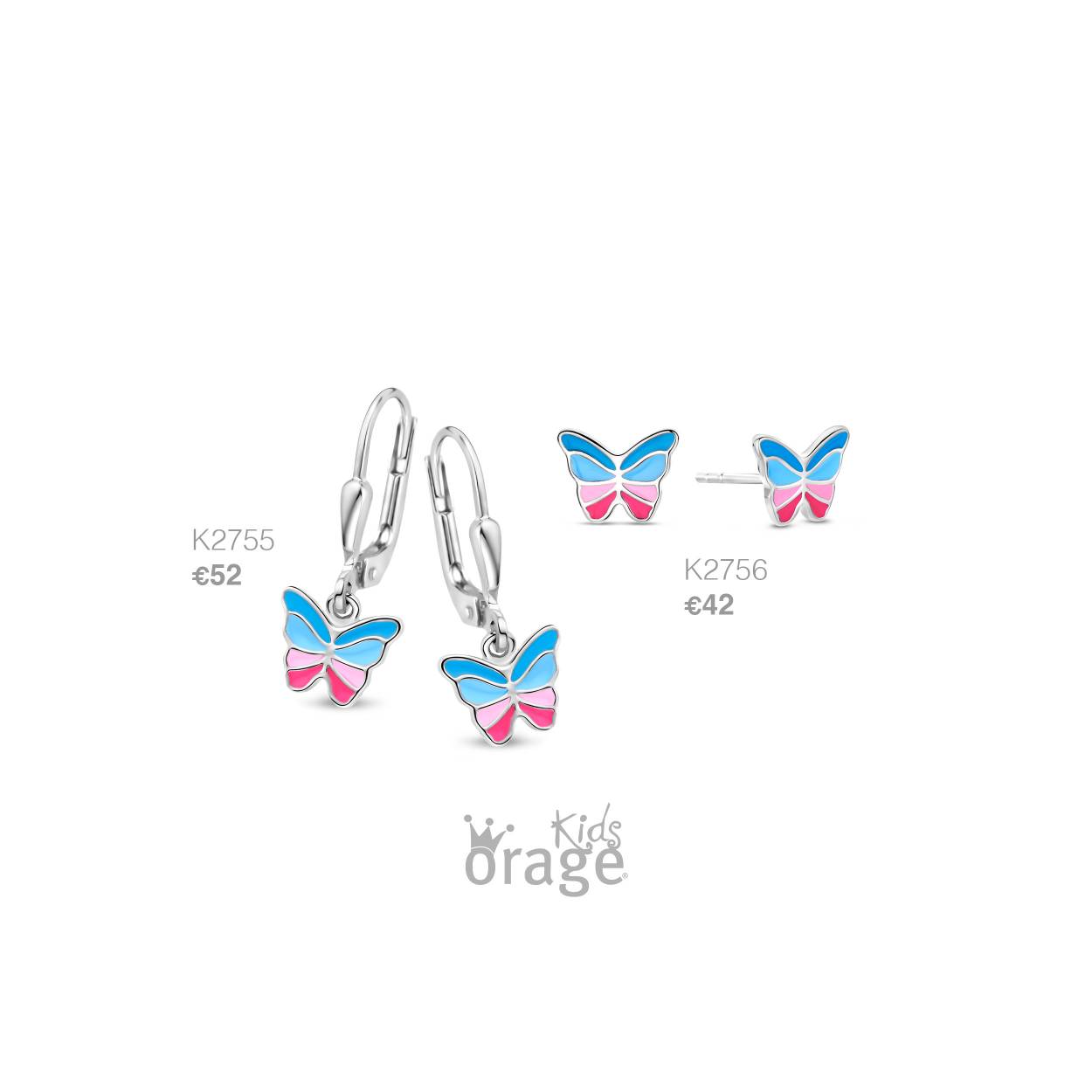 Zilveren oorstekers 'vlinder roze/blauw' van het merk Orage kids