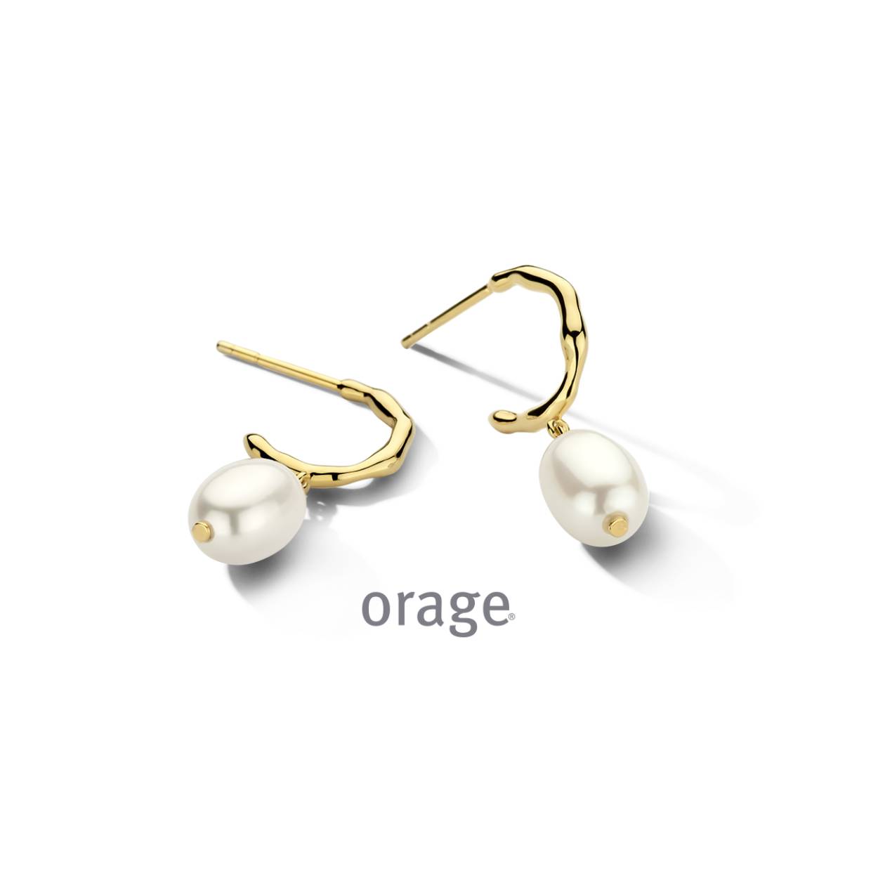 Goudkleurige oorhangers met zoetwaterparels van het merk Orage