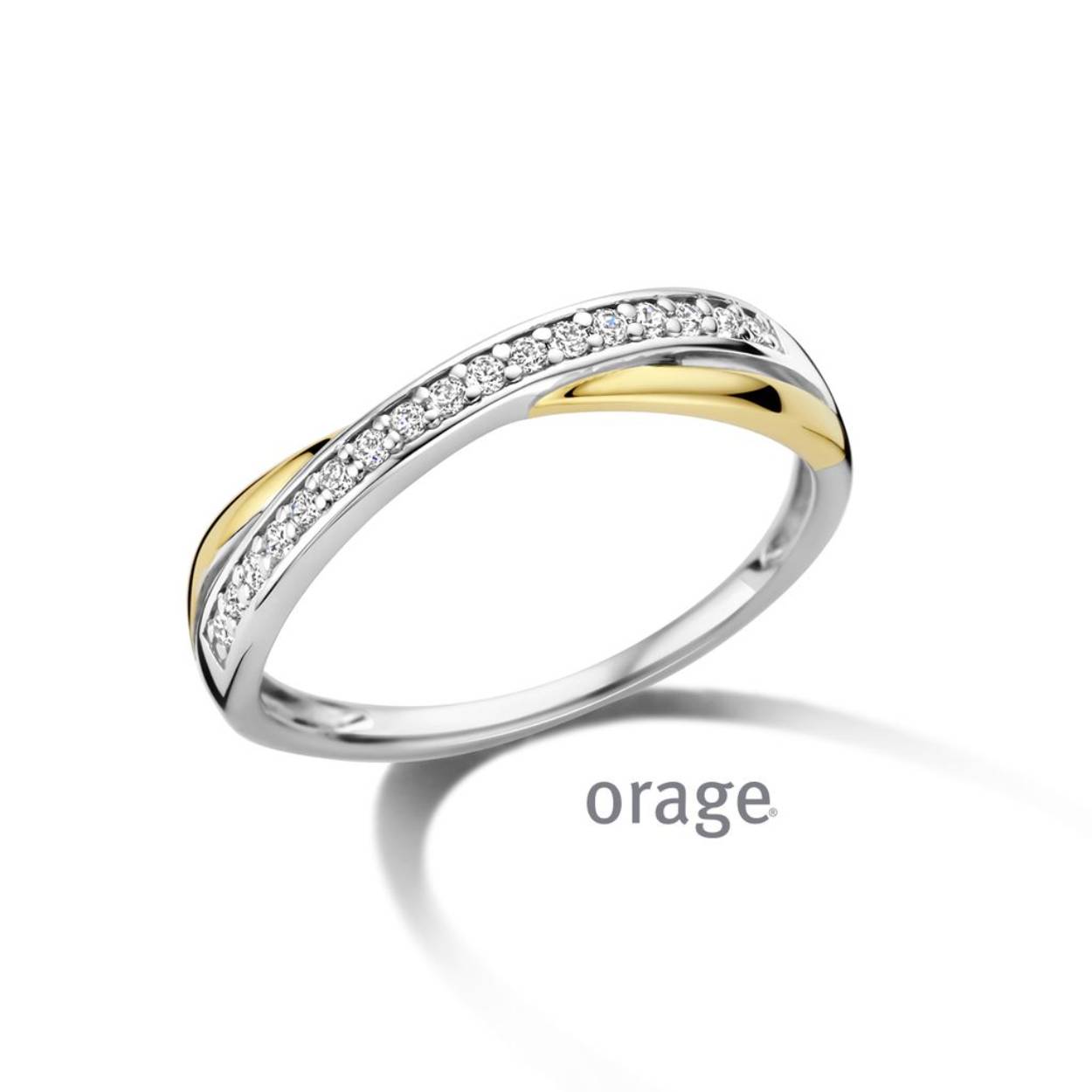 Bicolor (goud/zilverkleurige) ring met zirkonia's van het merk Orage