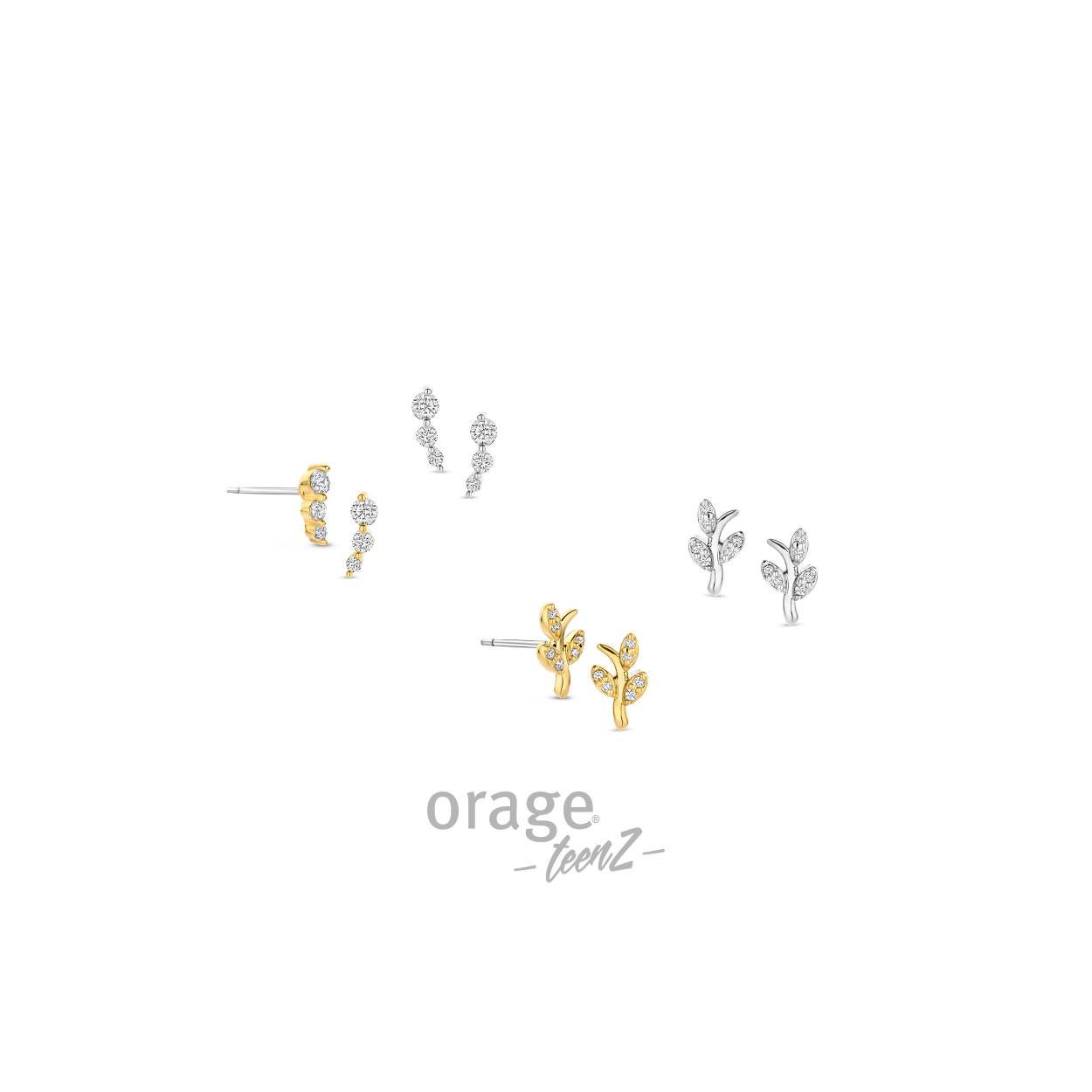 Zilveren oorstekers 'blaadje' met zirkonia's van het merk Orage Teenz