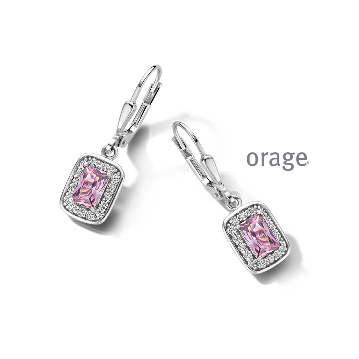 Zilveren oorhangers met witte zirkonia's en een centrale roze zirkonium