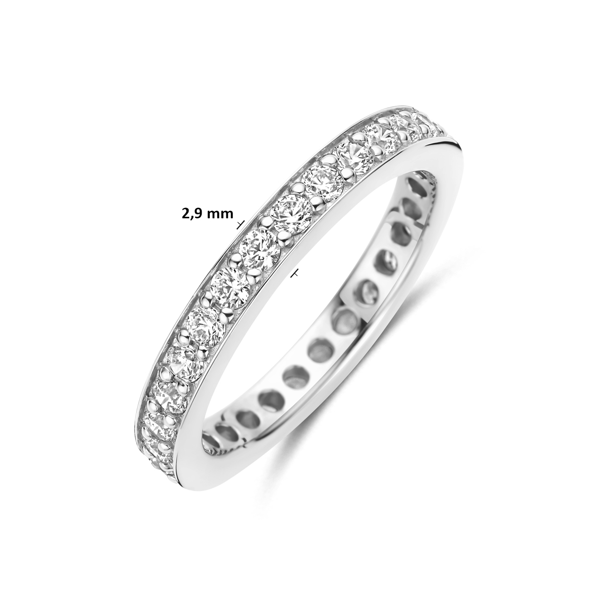 Gerhodineerd 925 zilveren ring uitgevoerd met zirkonia. De ring heeft een breedte van 2.9mm.