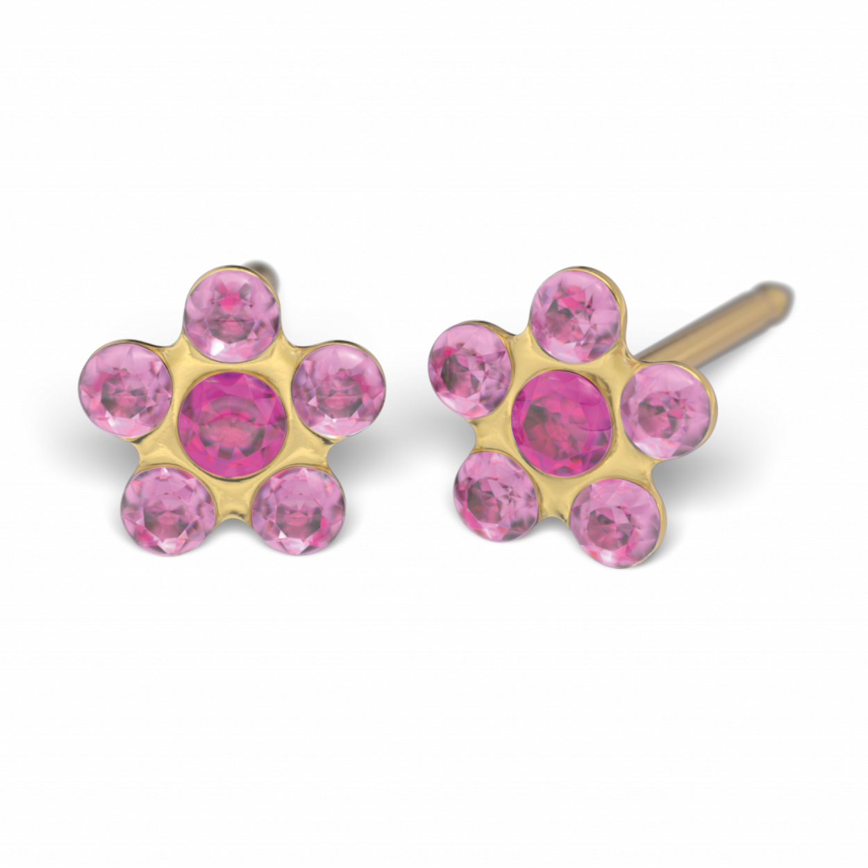 Goudkleurige oorstekers 'roze bloem' met zirkonium steentjes