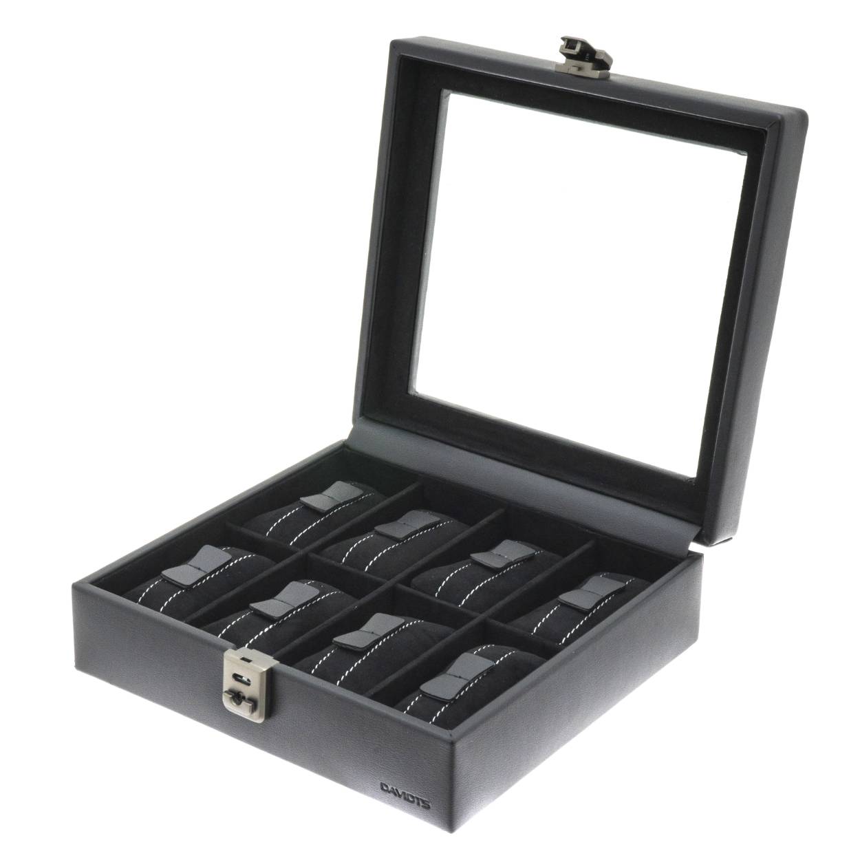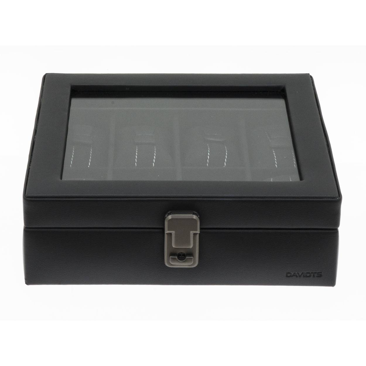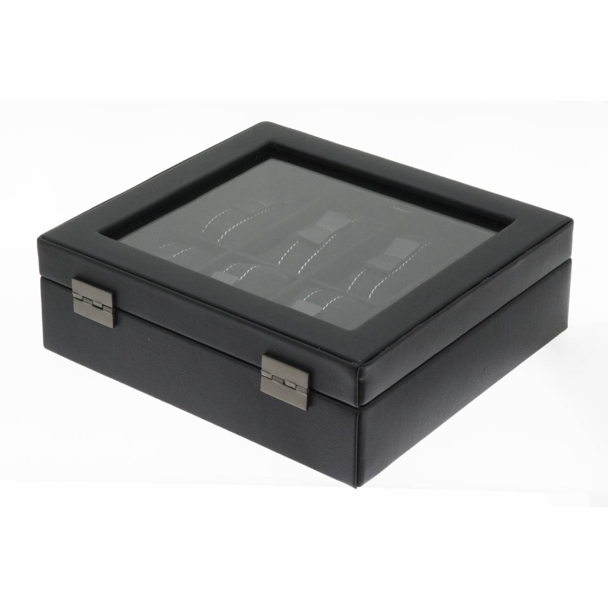 Zwarte kunstlederen opbergbox voor uurwerken met raam
