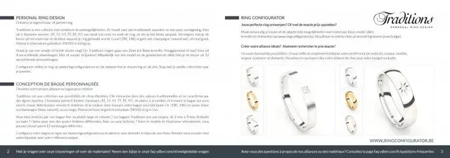 Houd je van een smalle of brede stoere ring? De Traditions ringen gaan van 2mm tot 8mm breedte. Hoogglanzend of mat? Kies uit 4 verschillende afwerkingen. Met of zonder briljanten? Afhankelijk van het model en de geselecteerde dikte heb je de keuze uit 12 verschillende steenzettingen.